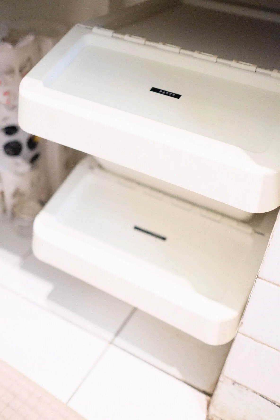 Di rumah kami yang mungil ini (kami tinggal di rumah dinas suami), terdapat dua manusia dan dua puppy yang nakalnya minta ampun. Karena kami adalah keluarga kecil maka sampahnya juga tidak terlalu banyak. Untuk pemilahan sampah, kami memiliki tempat khusus dan membaginya menjadi 2: Kertas dan Non-kertas. Untuk sampah organik, saya selalu menyediakan wadah setiap kali masak sebagai penampung sementara sebelum dimasukkan ke komposter.